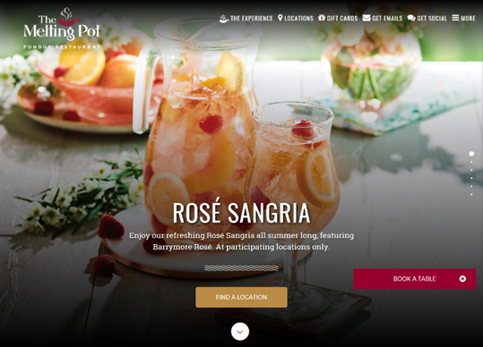 比如The Melting Pot的首頁,“地址”功能在導(dǎo)航中占據(jù)突出地位,讓人不可忽視,而點擊了“地址”的用戶會跳轉(zhuǎn)到一個集合了所有地址鏈接的頁面,同時還有一張地圖供喜歡這種方式的人們選擇。