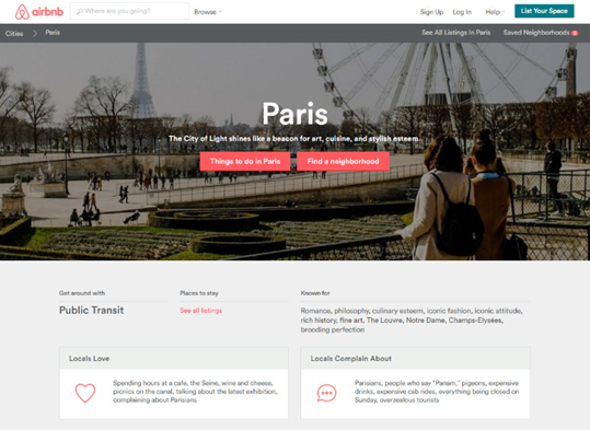 Airbnb的地址頁在內(nèi)容多樣性方面很值得我們學(xué)習(xí)。每個頁面都有各自的照片來代表每個城市。“當(dāng)?shù)厝讼矚g”和“當(dāng)?shù)厝吮г埂贝蟠笤黾恿四康牡氐奈Α?/span>