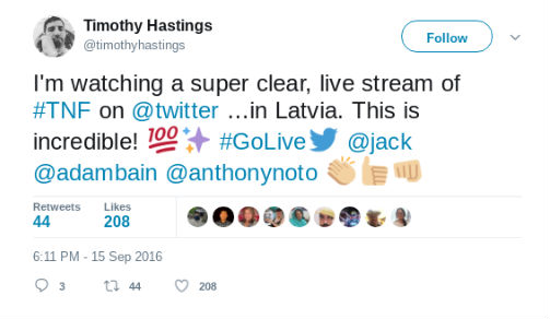 今年亞馬遜在NFL賽事直播中擊敗了Twitter,達(dá)成5000萬美元協(xié)議,將直播今年舉行的10場周四夜賽,而Facebook Live也已經(jīng)與??怂贵w育公司就冠軍聯(lián)賽直播事宜達(dá)成協(xié)議。