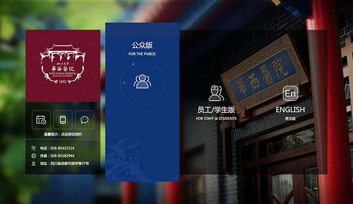 網(wǎng)站設(shè)計(jì)靈感源于華西醫(yī)院院訓(xùn)“厚德精業(yè)、求實(shí)創(chuàng)新”,取“厚”和“新”,兩字對比,展現(xiàn)華西風(fēng)采,厚代表華西百年厚重歷史和醫(yī)學(xué)功底,新代表華西科學(xué)技術(shù)及創(chuàng)新精神。網(wǎng)站著重在百年華西欄目去設(shè)計(jì)厚重感,穿插傳統(tǒng)紋樣元素體現(xiàn)百年華西的歷史底蘊(yùn)。全站板塊化排版設(shè)計(jì),采用不規(guī)則的內(nèi)容布局,整體風(fēng)格上體現(xiàn)新的特性,而功能上與his系統(tǒng)對接,實(shí)現(xiàn)預(yù)約掛號,醫(yī)生出停診等信息查詢。極大提升了患者及瀏覽者的便捷體驗(yàn)。